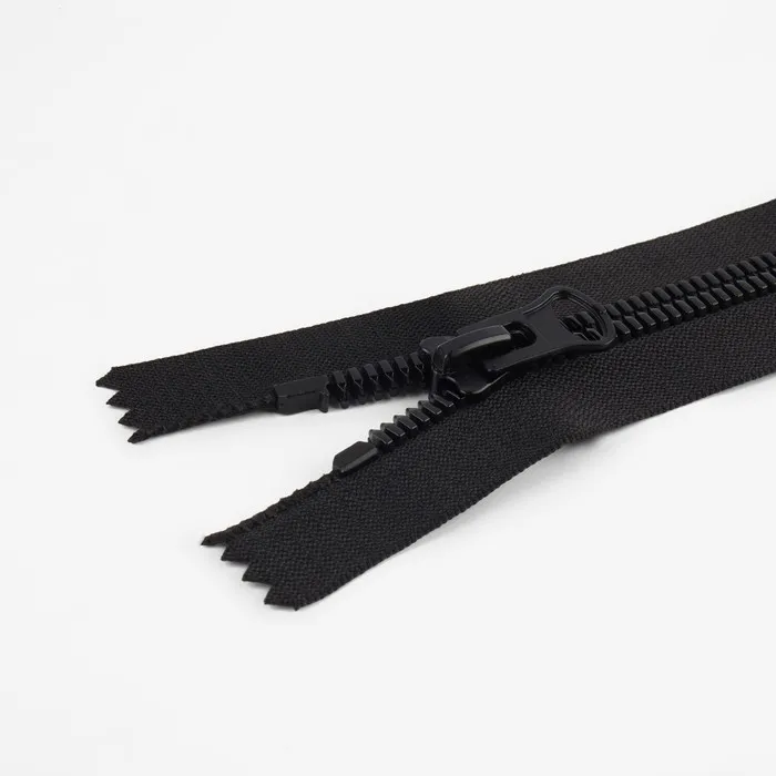 Пластиковые зубцы не истираются. Конструкция износостойкая, не выцветает. Бегунок плавно скользит по застёжке.