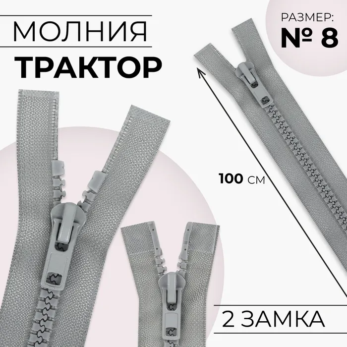 Молния «Трактор», №8, разъёмная, 2 замка, замки автомат, 100 см, серая — Характеристики