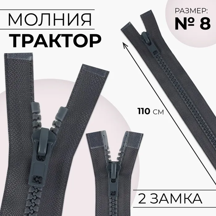 Молния «Трактор», №8, разъёмная, 2 замка, замки автомат, 110 см, тёмно-серая — Характеристики