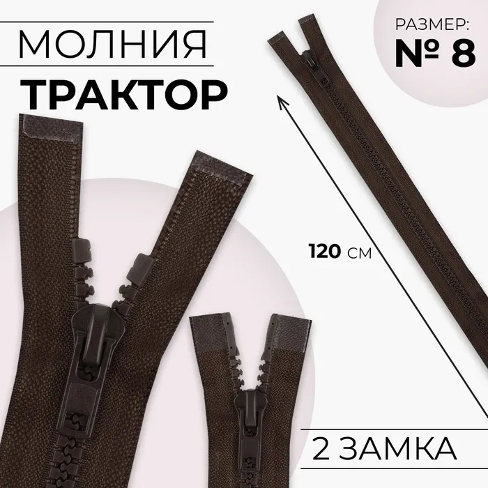 Молния «Трактор», №8, разъёмная, 2 замка, замки автомат, 120 см, коричневая — Характеристики