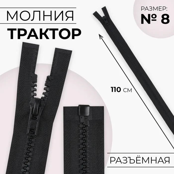 Молния «Трактор», №8, разъёмная, замок автомат, 110 см, чёрная — Характеристики