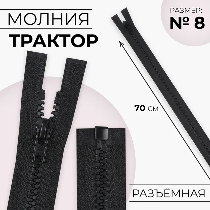 Молния «Трактор», №8, разъёмная, замок автомат, 70 см, чёрная — Характеристики