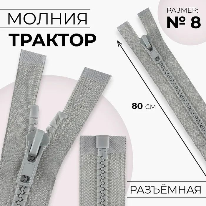 Тракторная молния отличается крупными звеньями. Такая модель подходит для плотных тканей. Используйте её для пошива верхней, спортивной и детской одежды.