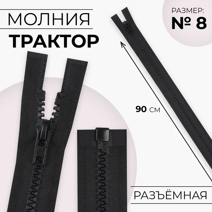Молния «Трактор», №8, разъёмная, замок автомат, 90 см, чёрная — Характеристики