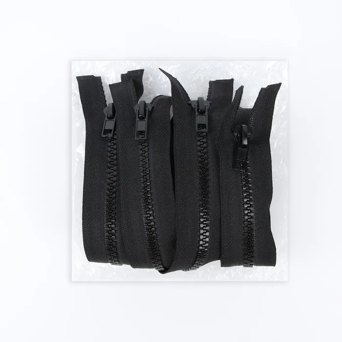 Данная молния имеет два замка на противоположных сторонах. Номер молнии обозначает ширину зубчиков в миллиметрах. Чаще всего такая застёжка используется для длинных изделий, например, пуховиков, спортивных сумок, кардиганов и т.п.