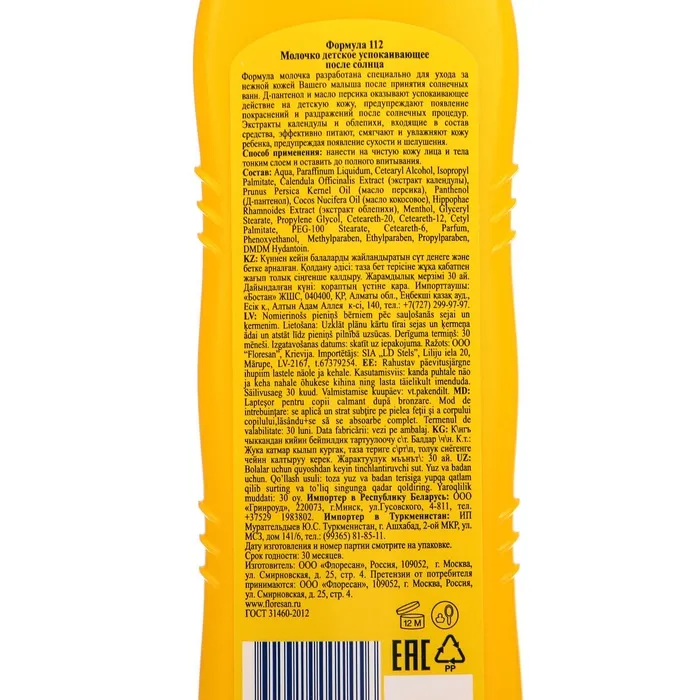 Нанесите молочко на чистую кожу после пребывания на солнце, уделяя внимание наиболее сухим участкам. Лёгкими массажными движениями распределите средство до полного впитывания. Используйте регулярно для поддержания здоровья и мягкости кожи вашего ребёнка.