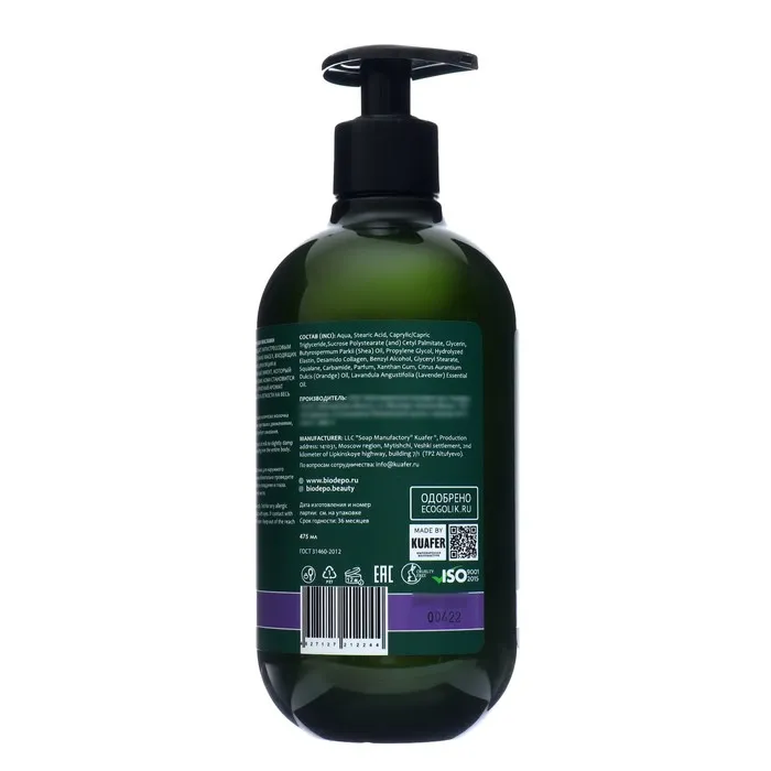 Состав: Aqua, Stearic Acid, Glycerin, Glyceryl Stearate, Caprylic/Capric Triglyceride, Butyrospermum Parkii (Shea) Oil, Propylene Glycol, Hydrolyzed Elastin, Desamido Collagen, Benzyl Alcohol, Squalane, Carbamide, Parfum, Xanthan Gum, Citrus Aurantium Dulcis (Orange) Oil, Lavandula Angustifolia (Lavender) Essential Oil.