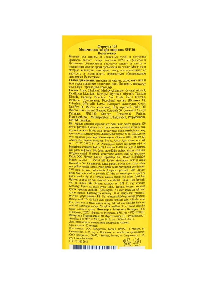 Наносите молочко равномерно на кожу за 15–20 минут до выхода на солнце. Обновляйте защиту каждые 2 часа, особенно после купания или активного отдыха. Храните при температуре не ниже 0°C, чтобы сохранить свойства продукта.