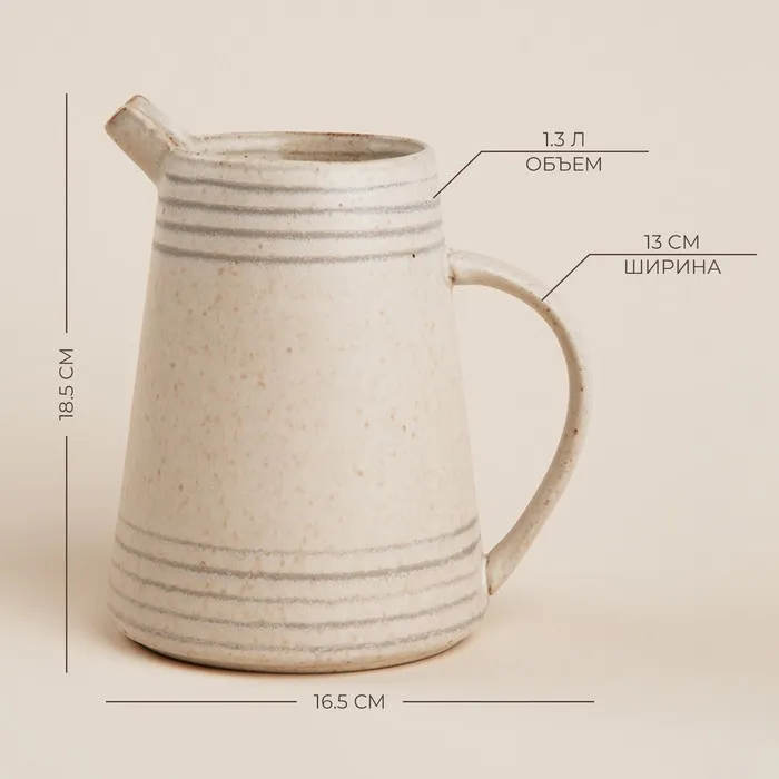 Молочник SL Home «Райяс», 1.3 л, 16.5×13×18 см, керамика, бежевый — Характеристики