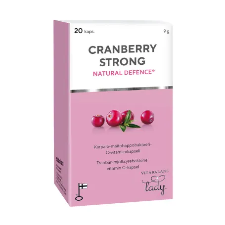 Cranberry Strong Natural Defense содержит набор из четырех различных штаммов молочнокислых бактерий, типичных для микробиоты интимной зоны (Lactobacillus acidophilus, Lactobacillus casei, Lactobacillus rhamnosus, Bifidobacterium longum). Бактерии защищены от кислотности желудка по специальной технологии, которая обеспечивает выживаемость и хорошую жизнеспособность бактерий при прохождении через желудочно-кишечный тракт.