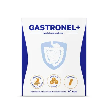 Gastronel+ — это препарат молочно - кислых бактерий, содержащий бактерии Bacillus coagulans , экстракт гамма-оризанола, который способствует пищеварению, инулин и кукурузные волокна Hi-MaizeTM, молозиво, витамины B6 и B12 и биотин, который способствует хорошему самочувствию слизистой оболочки кишечника.