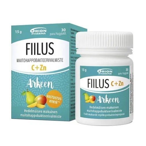 Препарат молочно - кислых бактерий со свежим фруктовым вкусом, подходит для повседневного использования. Жевательные таблетки C+Zn компании Fiilus Arkeen содержат комбинацию молочно - кислых бактерий Lactobacillus rhamnosus GG и бифидобактерий Bifidobacterialum lactis, витамин С и цинк, способствующие нормальной работе иммунной системы.