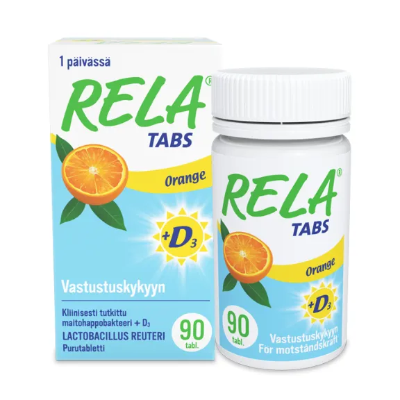 Rela Tabs – таблетки для рассасывания  с лактобактериями Lactobacillus Reuteri. Таблетки Rela применяются для нормализации и поддержки желудочно-кишечной флоры, при лечении антибиотиками, при смене рациона питания в путешествиях. Rela tabs - безопасны в использовании и подходят для всех возрастов.