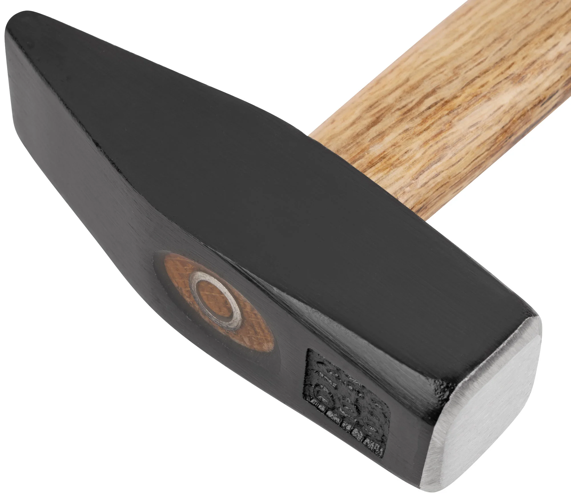 Молоток изготовлен из кованой инструментальной стали, что обеспечивает его долговечность и надежность. Деревянная ручка удобна в использовании, снижает вибрацию и обеспечивает комфортный хват при работе.