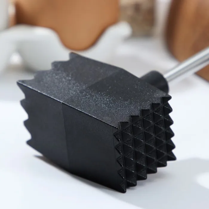 Молоток для мяса имеет тяжелую рукоятку и плоскую поверхность, которая покрыта мелкими зубчиками. Это позволяет ему эффективно проникать в мясо и разбивать его на мелкие кусочки.Используя молоток для мяса, вы сможете приготовить мясные блюда с более нежной текстурой и улучшить их вкус.Этот инструмент станет незаменимым помощником на вашей кухне и поможет вам создавать настоящие кулинарные шедевры.
