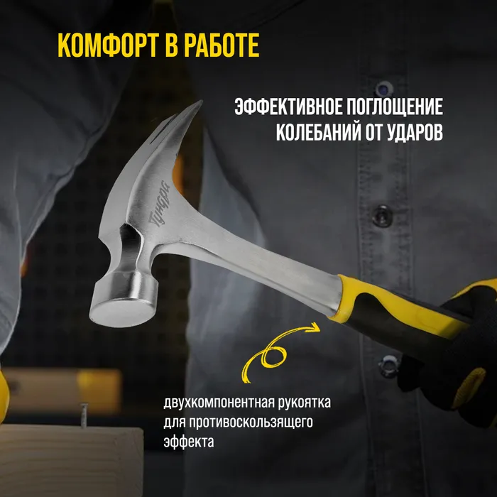 Молоток-гвоздодер ТУНДРА ПРОФИ, цельнокованый, двухкомпонентная рукоятка, 450 г — Характеристики
