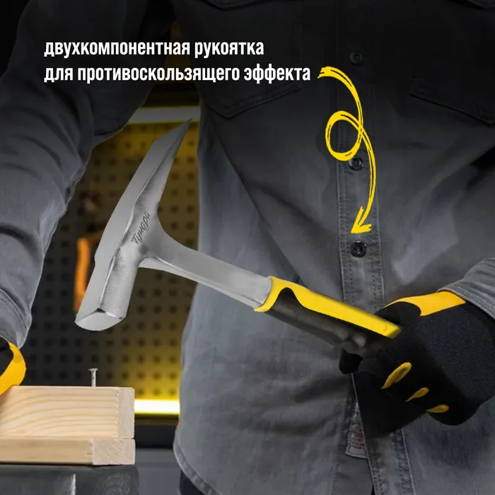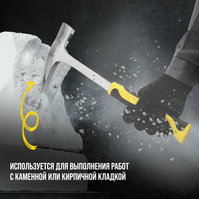 Молоток каменщика ТУНДРА ПРОФИ, цельнокованый, двухкомпонентная рукоятка, 450 г — Характеристики