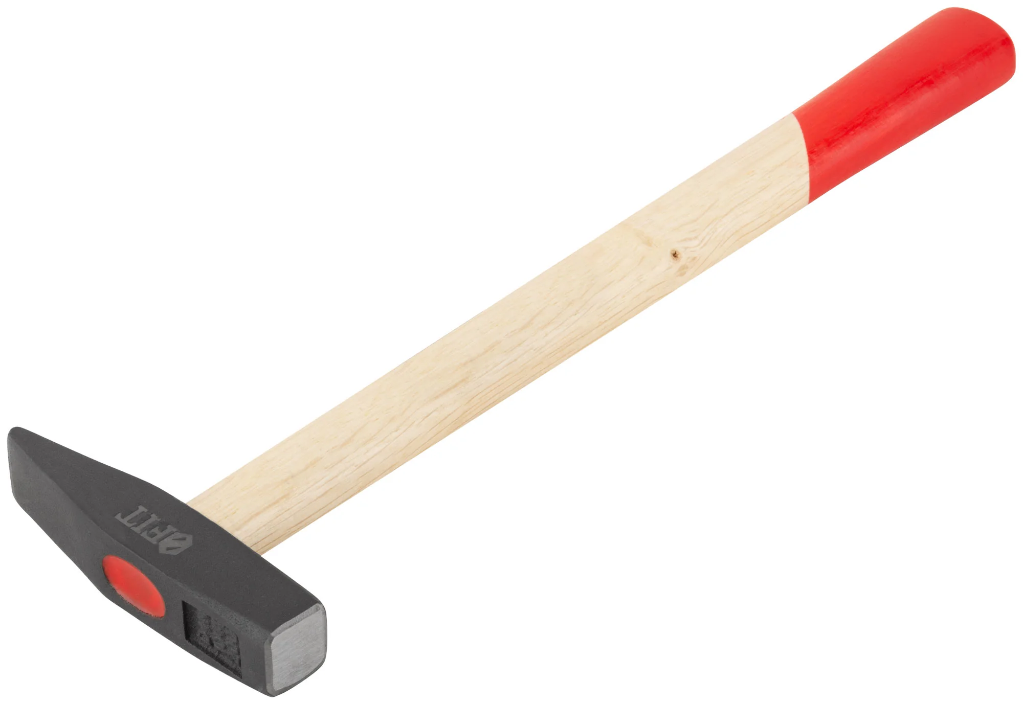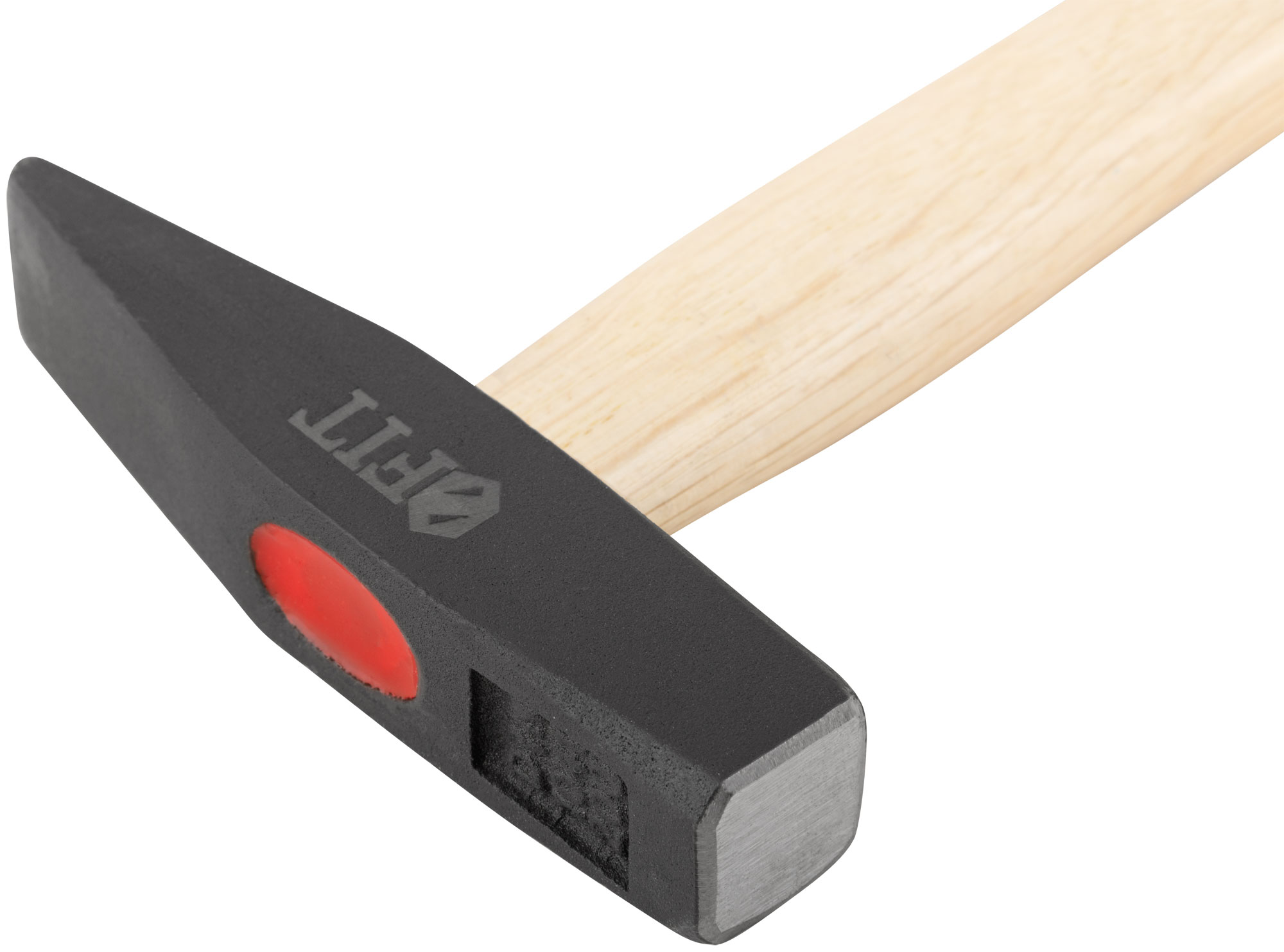 Молоток FIT изготовлен из штампованной инструментальной стали по стандарту DIN 1041, что гарантирует его прочность и долговечность. Деревянная ручка обеспечивает комфортный хват и минимизирует вибрации при ударе.