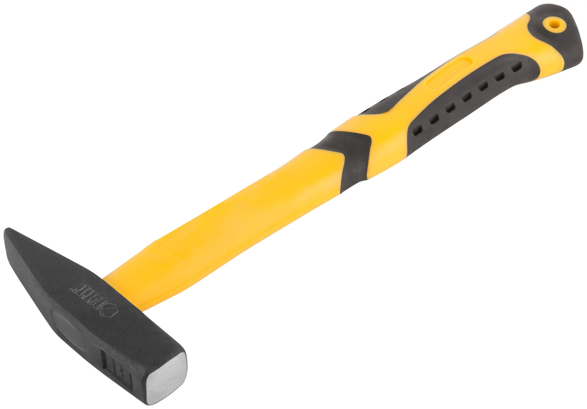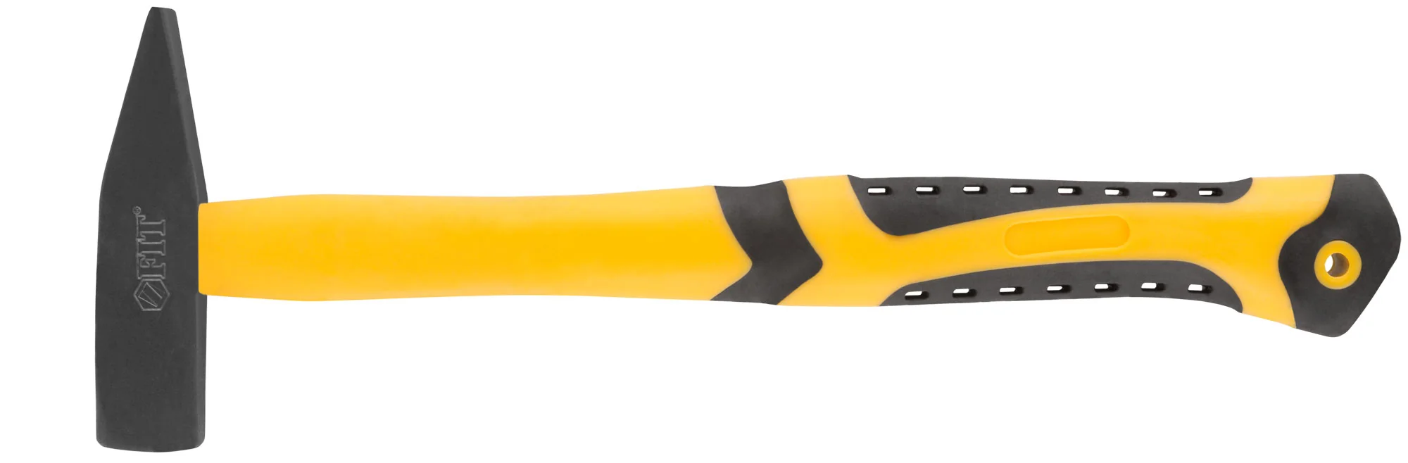 Молоток изготовлен из кованой инструментальной стали с черным порошковым покрытием, что обеспечивает его прочность и долговечность. Фиберглассовая прорезиненная ручка усилена пластиком, что делает ее надежной и устойчивой к внешним воздействиям. Антивибрационные накладки на ручке эффективно поглощают колебания, возникающие при работе, снижая нагрузку на руки мастера.
