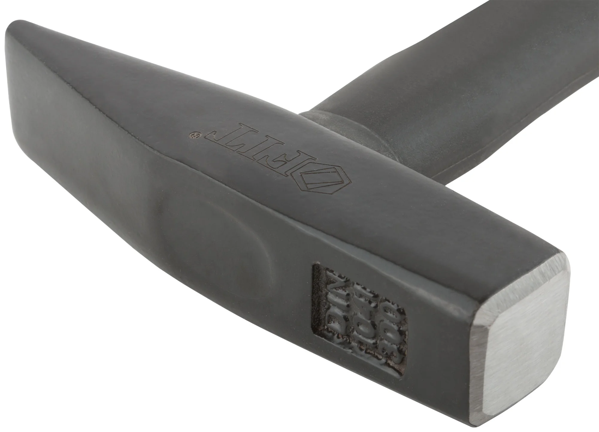 Головка молотка изготовлена из кованой инструментальной стали по стандарту DIN 1041, что гарантирует высокую прочность и долговечность. Усиленная фиберглассовая ручка с прорезиненной поверхностью обеспечивает комфортный и надежный захват, снижая усталость при длительном использовании.