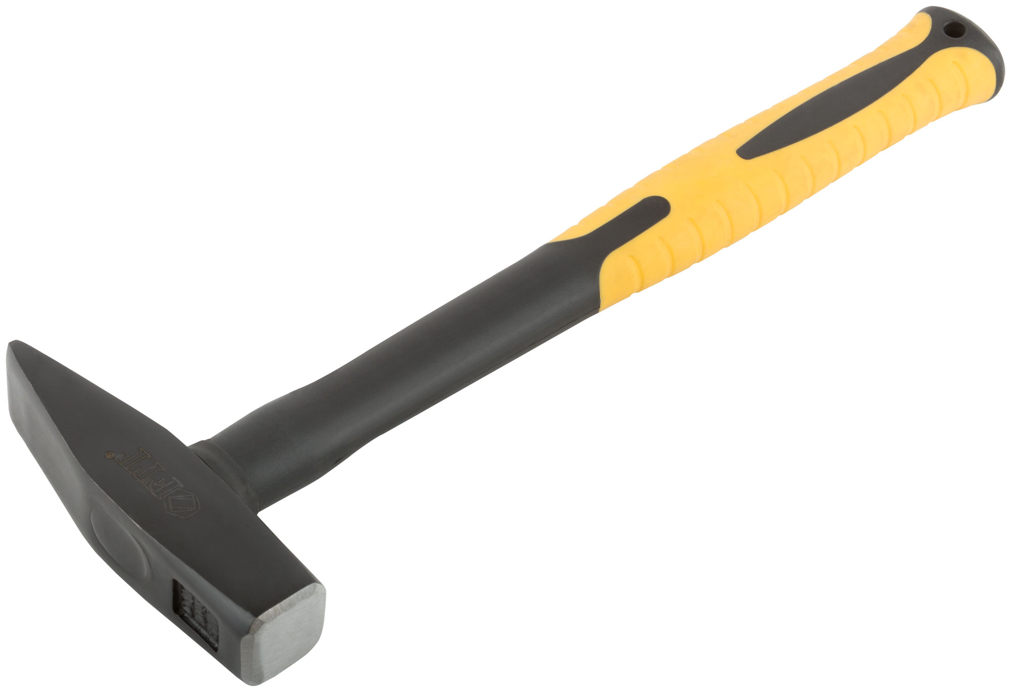 Молоток изготовлен из кованой инструментальной стали по стандарту DIN 1041, что обеспечивает его высокую износостойкость. Прорезиненная фиберглассовая ручка, усиленная пластиком, снижает вибрацию и повышает комфорт в работе.