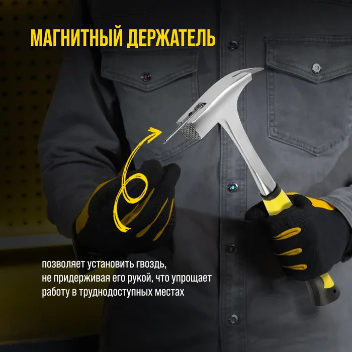 Молоток кровельщика ТУНДРА, цельнокованый, боек с магнитом, 2К рукоятка, 600 г — Характеристики