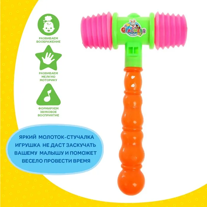 С яркой игрушкой малыш весело проведёт время! Если ударить изделием по твёрдой поверхности, раздадутся звонкие звуки, которые ребёнок непременно захочет повторить.