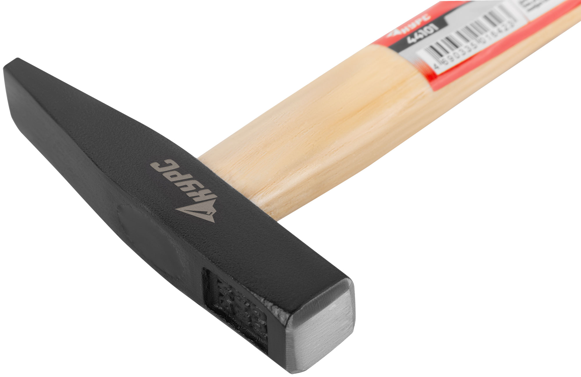Молоток оснащен деревянной ручкой, которая обеспечивает комфортный и надежный хват даже при длительном использовании. Головка молотка изготовлена из инструментальной стали, что гарантирует долговечность и устойчивость к износу.
