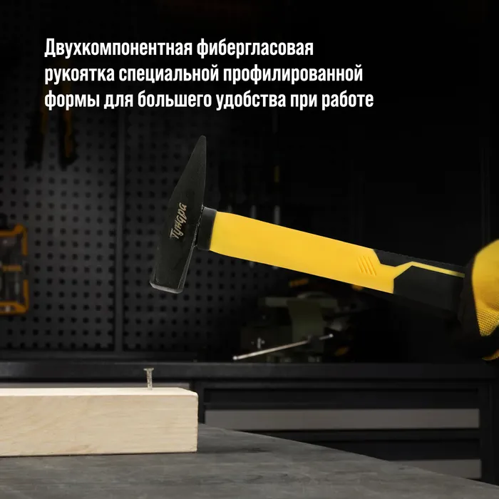 Молоток слесарный ТУНДРА ПРОФИ, квадратный боек, фиберглассовая 3К рукоятка, 200 г — Характеристики