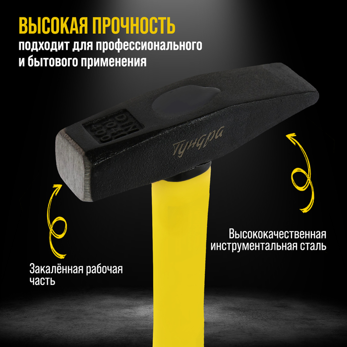 Молоток слесарный ТУНДРА ПРОФИ, квадратный боек, фиберглассовая 3К рукоятка, 400 г — Характеристики