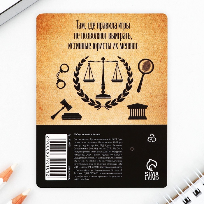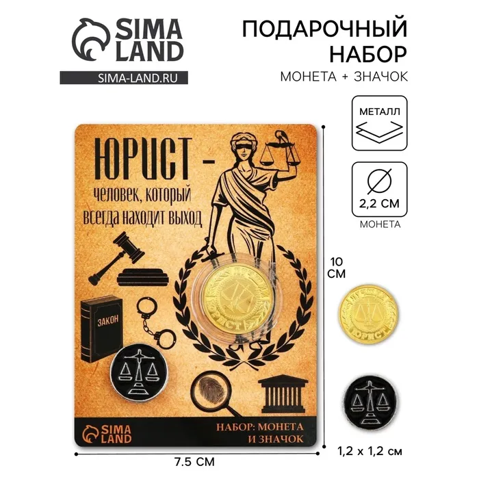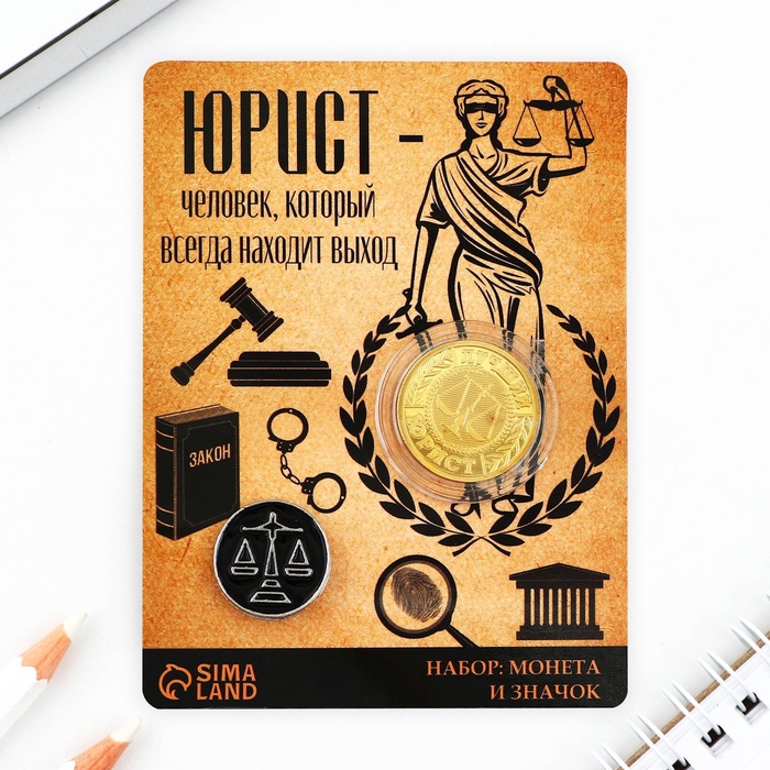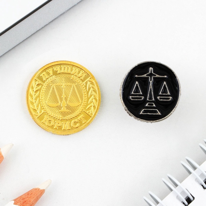 Монета и значок «Юрист», d=2.2 см — Характеристики