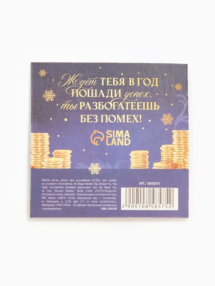 Монета новогодняя сувенирная «Благополучия и успеха», диам. 2.2 см — Характеристики
