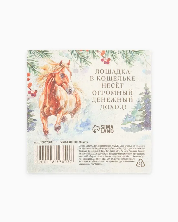 Монета новогодняя сувенирная «Богатства» акварель, латунь, диам 2.5 см — Характеристики