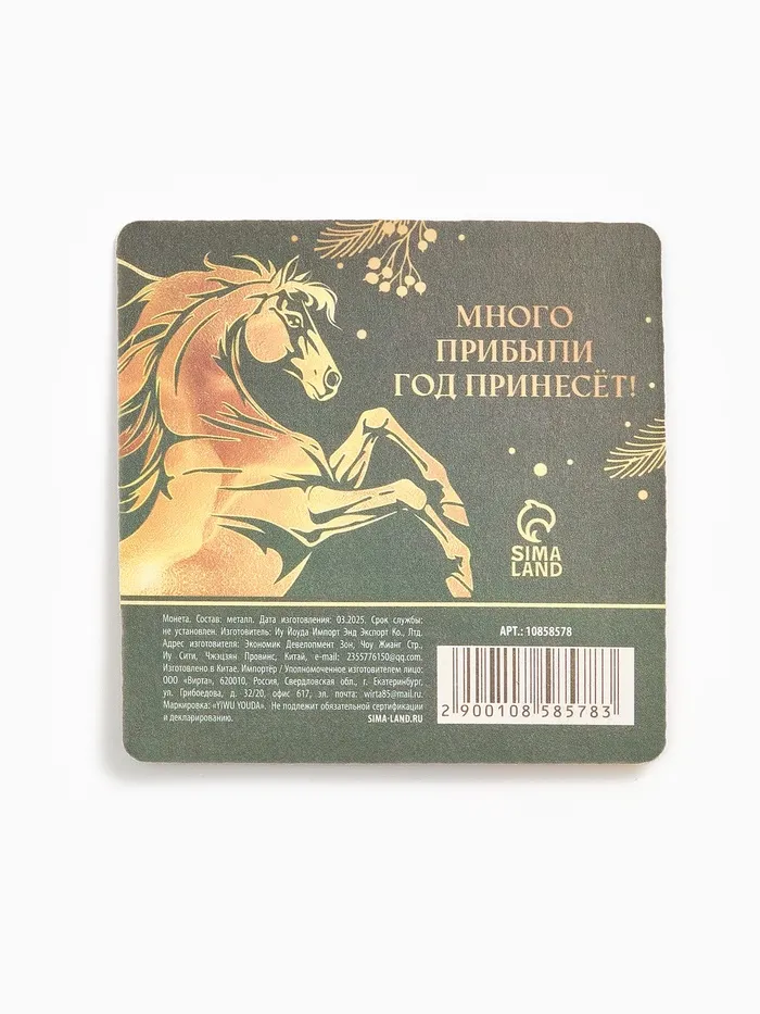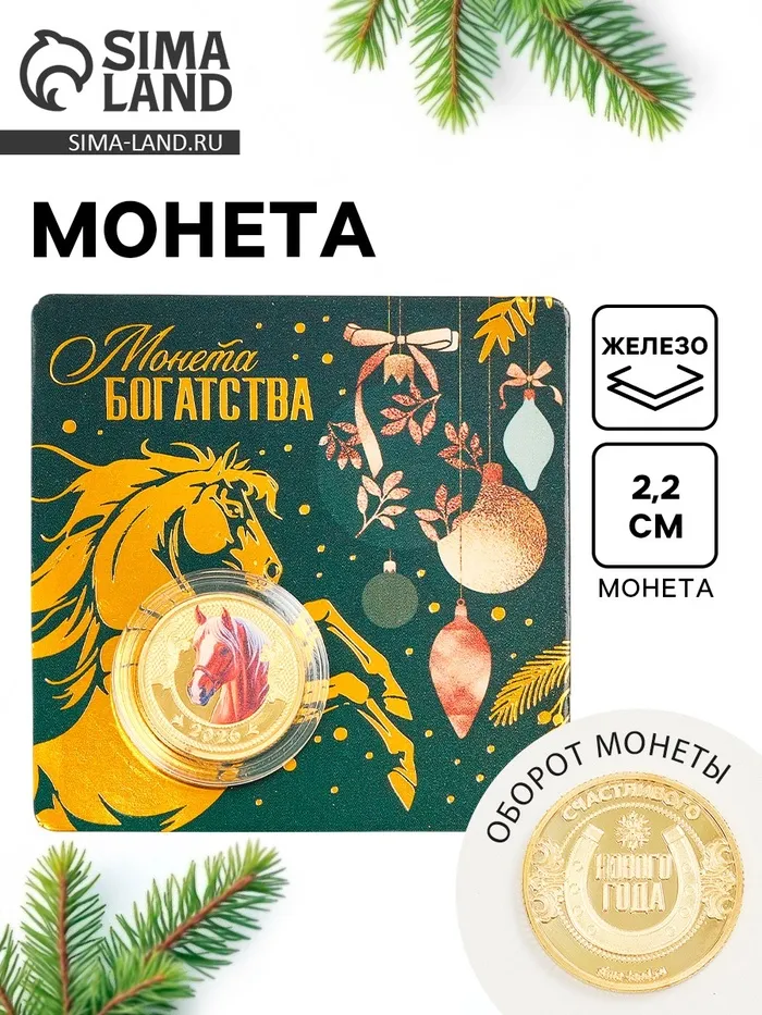 Монета новогодняя сувенирная «Богатства», диам. 2.2 см — Характеристики