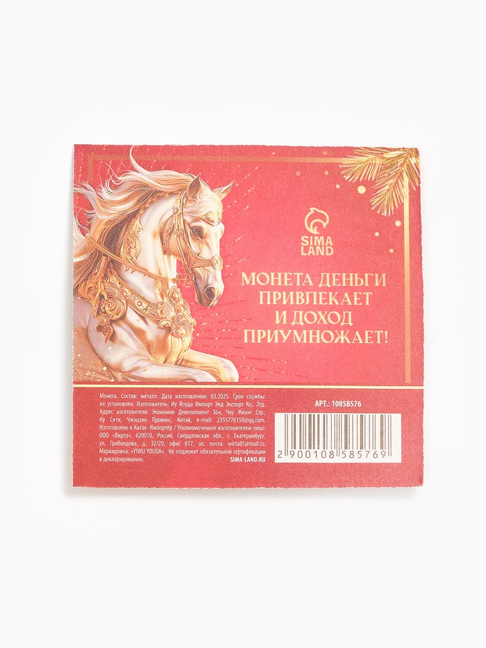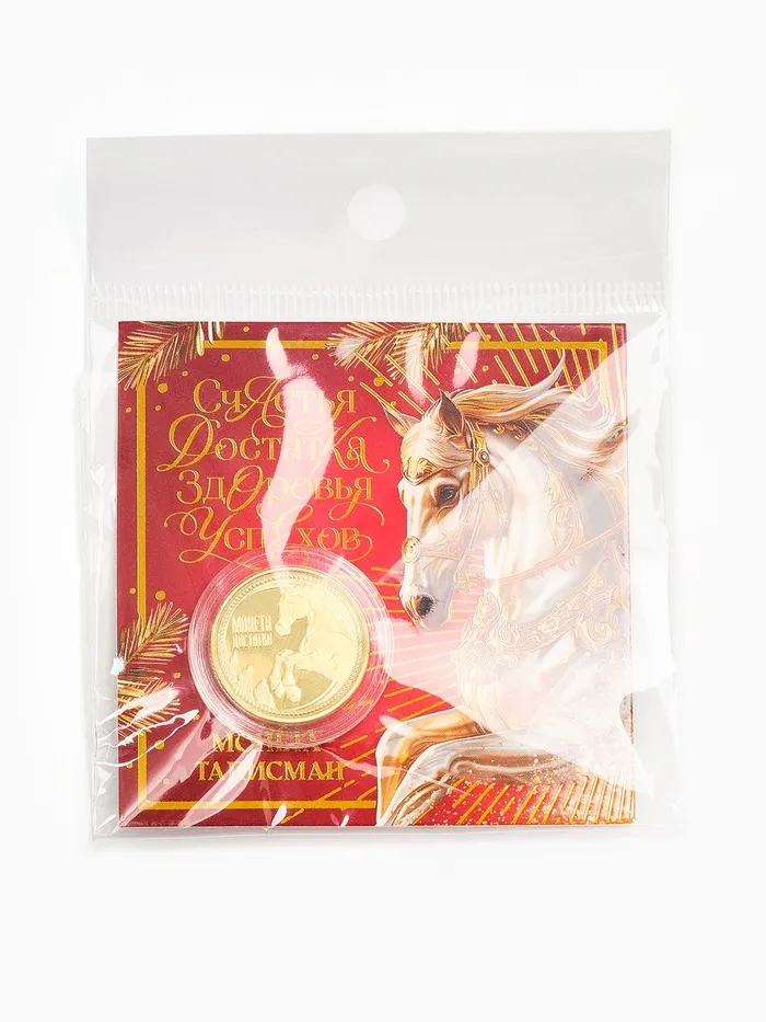 Монета новогодняя сувенирная «Счастья, достатка, здоровья, успехов», диам. 2.2 см — Характеристики