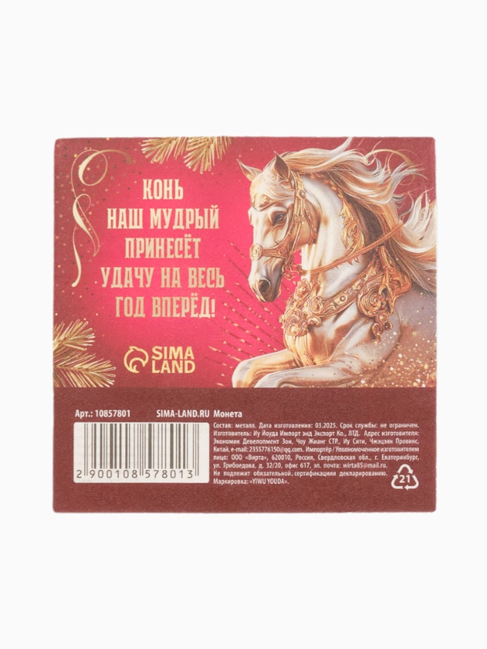 Монета новогодняя сувенирная «Счастливого года», латунь, диам 2.5 см — Характеристики