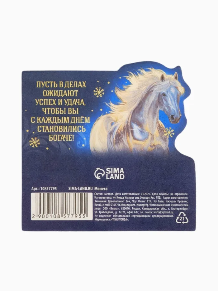 Монета новогодняя сувенирная «Успеха и процветания», латунь, диам 2.5 см — Характеристики