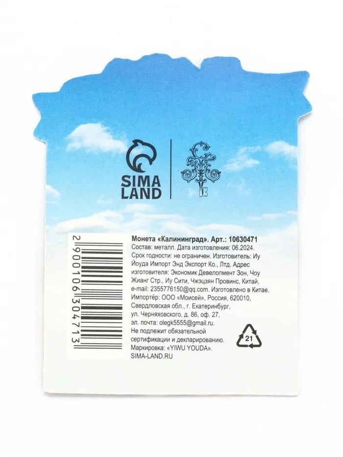 Монета сувенир «Калининград», диам 2 см — Характеристики