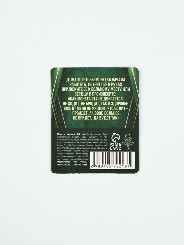 Монета сувенир «Крепкого здоровья», диам. 2.5 см — Характеристики