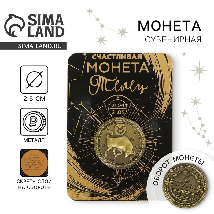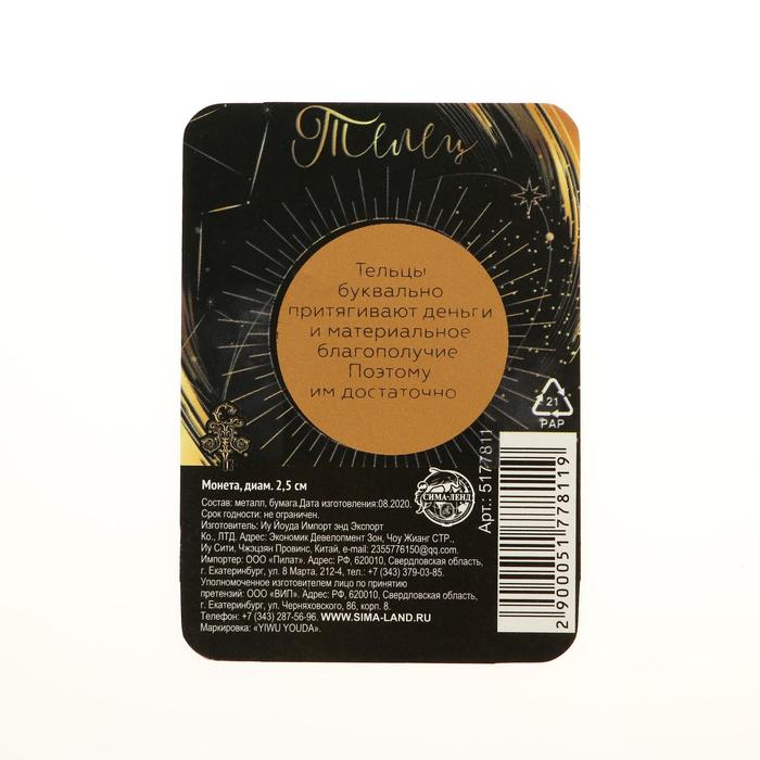 Монета сувенир знак зодиака «Телец», d=2,5 см. — Характеристики