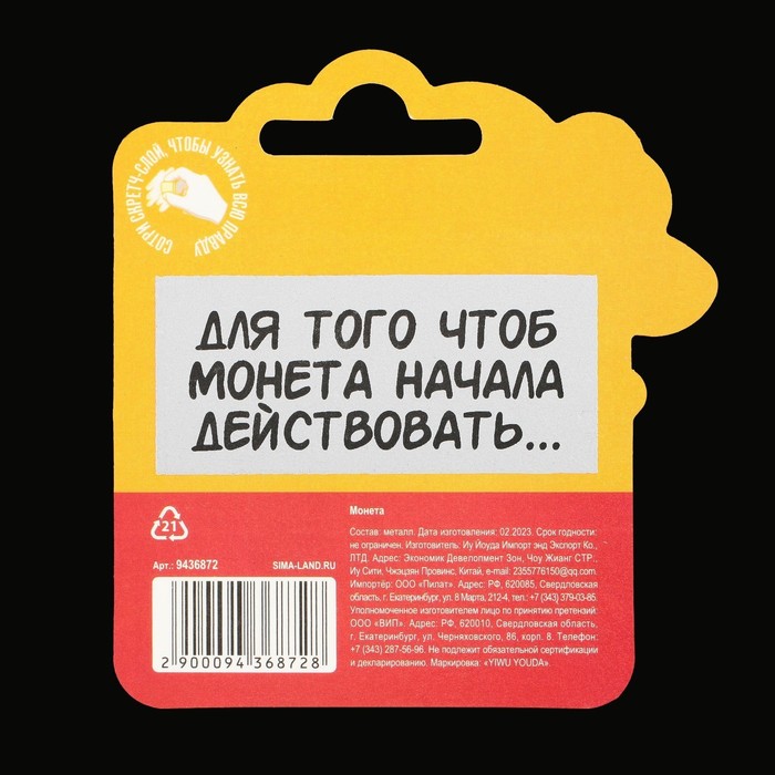 Размер изделия схож с монетой номиналом в 5 рублей, а потому вы всегда сможете носить её с собой. Она станет прекрасным подарком для друзей и близких, подчеркнув вашу заботу и хорошее чувство юмора!