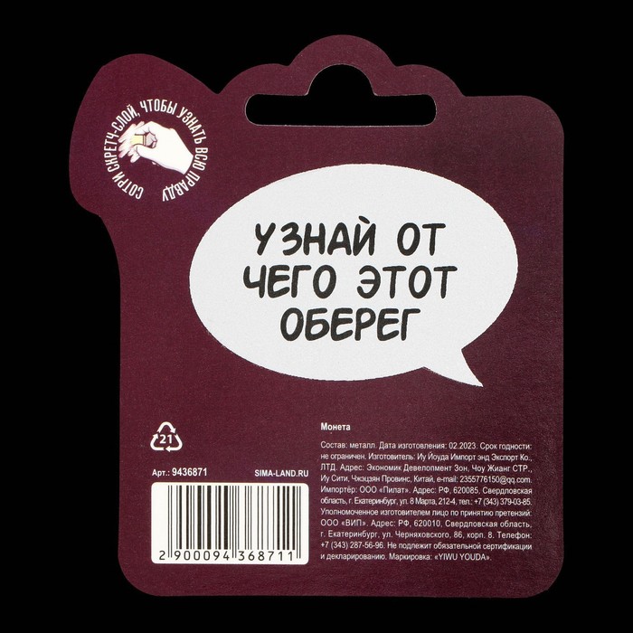 Размер изделия схож с монетой номиналом в 5 рублей, а потому вы всегда сможете носить её с собой. Она станет прекрасным подарком для друзей и близких, подчеркнув вашу заботу и хорошее чувство юмора!