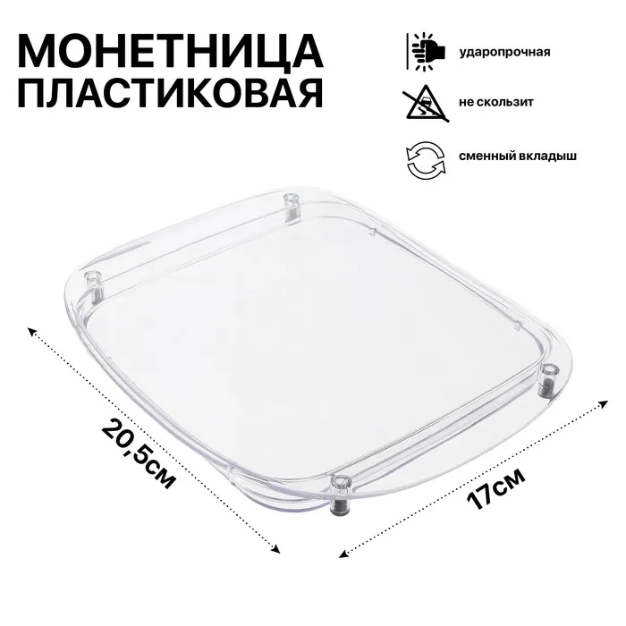 Монетница пластиковая OPTIMA, 17×20.5×1.5, прозрачная — Характеристики