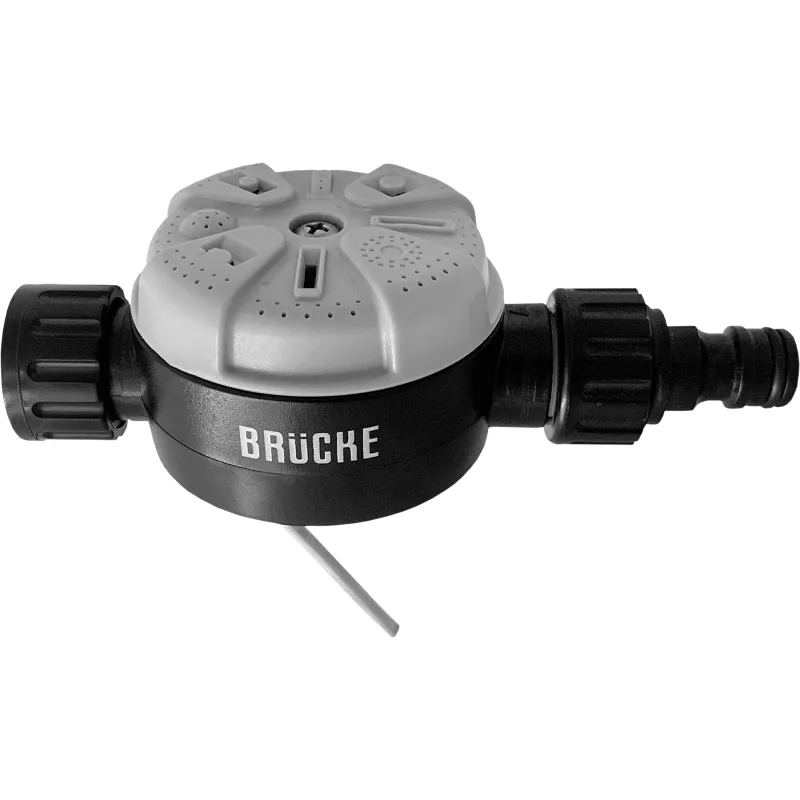 Компактный многофункциональный дождеватель с 8 режимами распыления и металлическим штырем для крепления в землю. Возможность расширения с помощью дополнительного быстросъемного соединителя. Область полива до 50 м² в зависимости от давления воды.