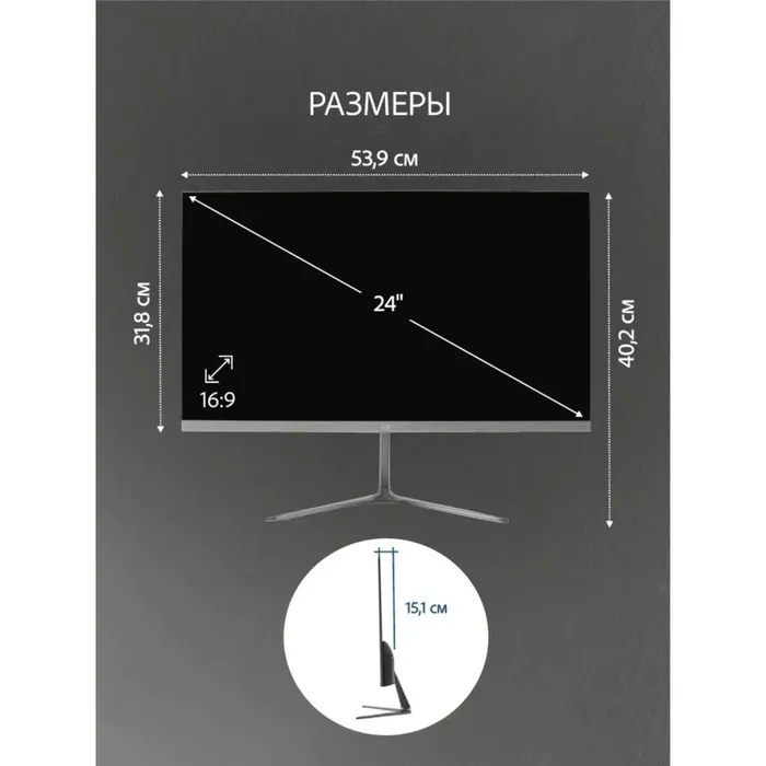 Дизайн монитора выполнен в классическом черном цвете с тонкими рамками, что придает ему современный и минималистичный вид. Такой внешний вид легко впишется в любой интерьер, будь то офис или домашний рабочий стол. Тонкие рамки создают эффект «безрамочности», особенно если вы решите использовать несколько мониторов для работы или игр.