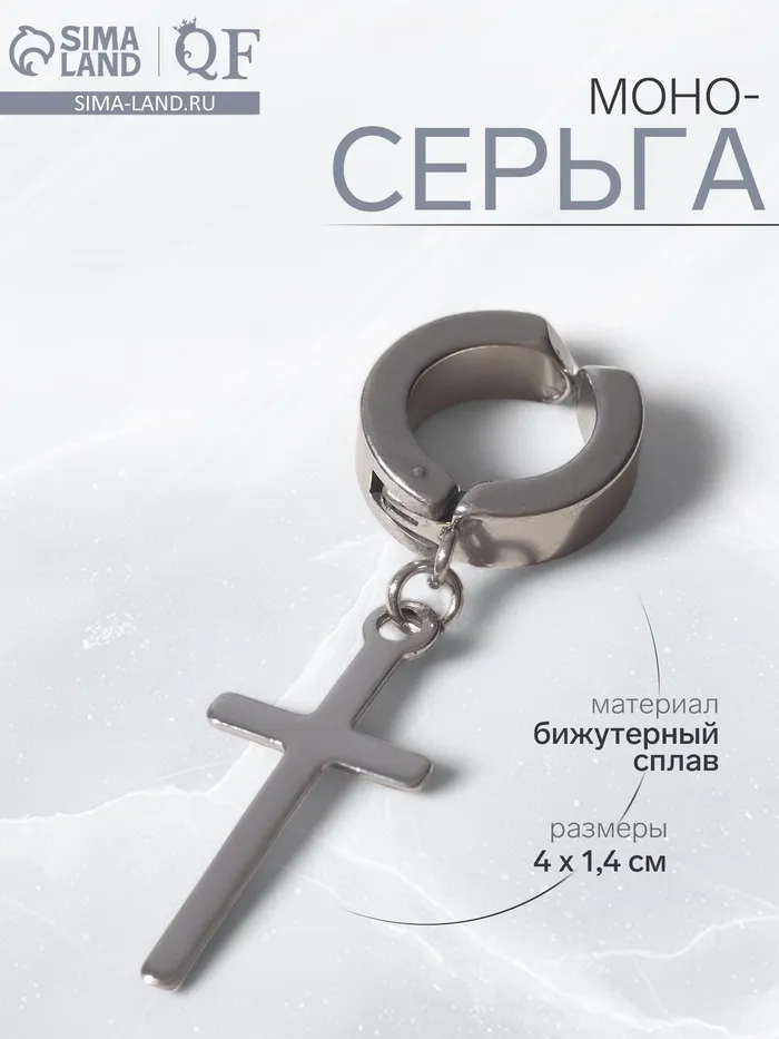 Моно-серьга «Крестик» удлинённый, цвет серебро — Характеристики