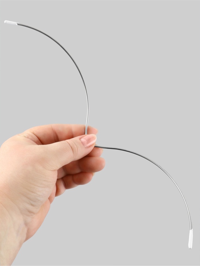 Вам понадобится гибкое лекало или толстая проволока. Приложите его к основанию грудной железы, не разгибая наложите на лист бумаги, обведите линию изгиба с внутренней стороны и измерьте линейкой по горизонтали от одного края до другого. Это и будет размер вашего каркаса.