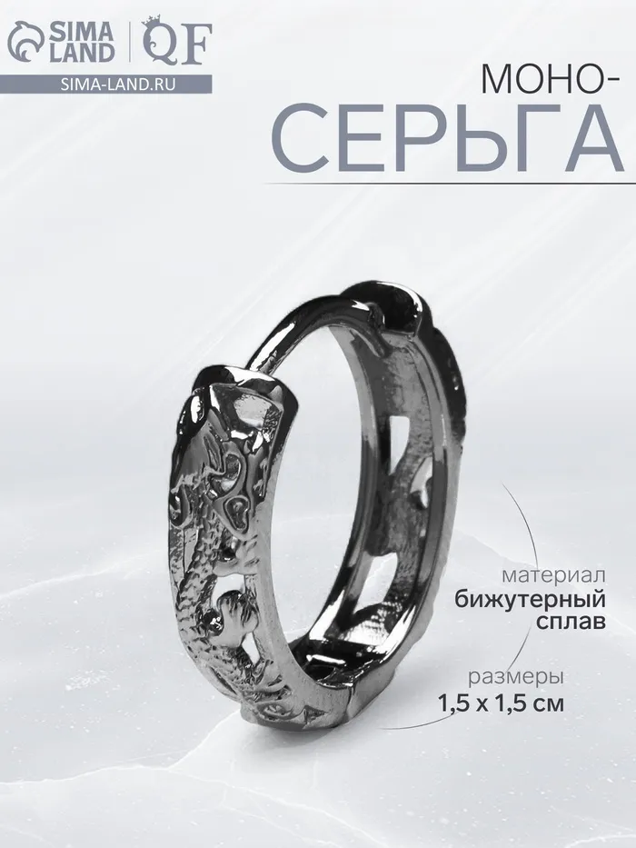 Погрузитесь в мир восточной эстетики с уникальной моносерьгой в виде резного дракона, выполненной из качественного металла в темно-сером цвете. Этот аксессуар длиной 1,5 см станет настоящим акцентом в вашем образе, добавляя нотку загадочности и силы.