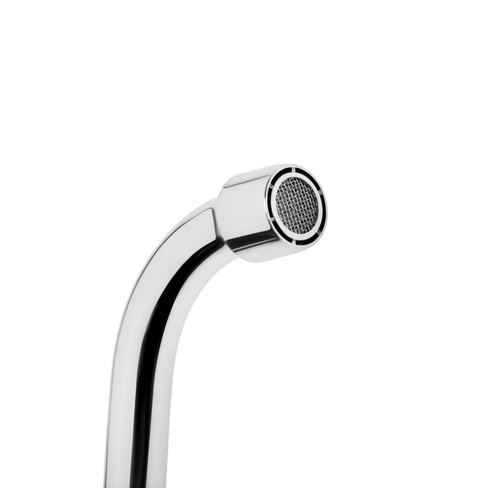 Тип излива смесителя - поворотный, что позволяет удобно направлять струю воды. Аэратор смесителя имеет антиизвестковое покрытие, что помогает предотвратить образование накипи и обеспечивает плавный и равномерный поток воды.