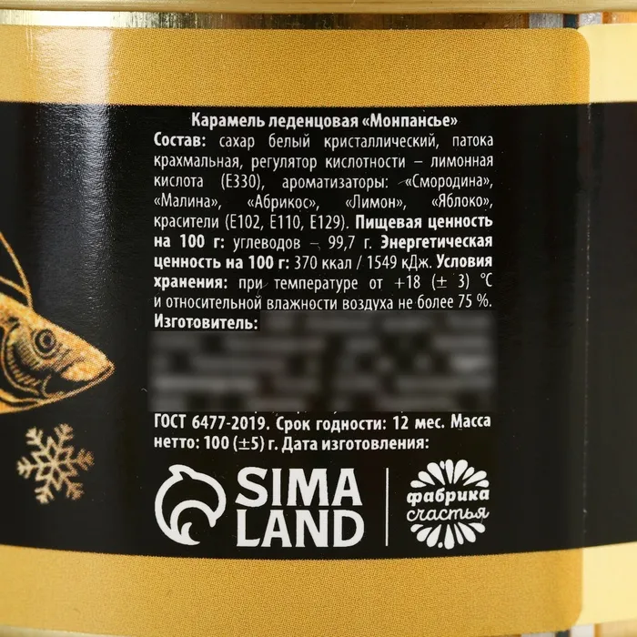 Монпансье «Шпроты»: со вкусом тутти-фрутти, 100 г — Характеристики